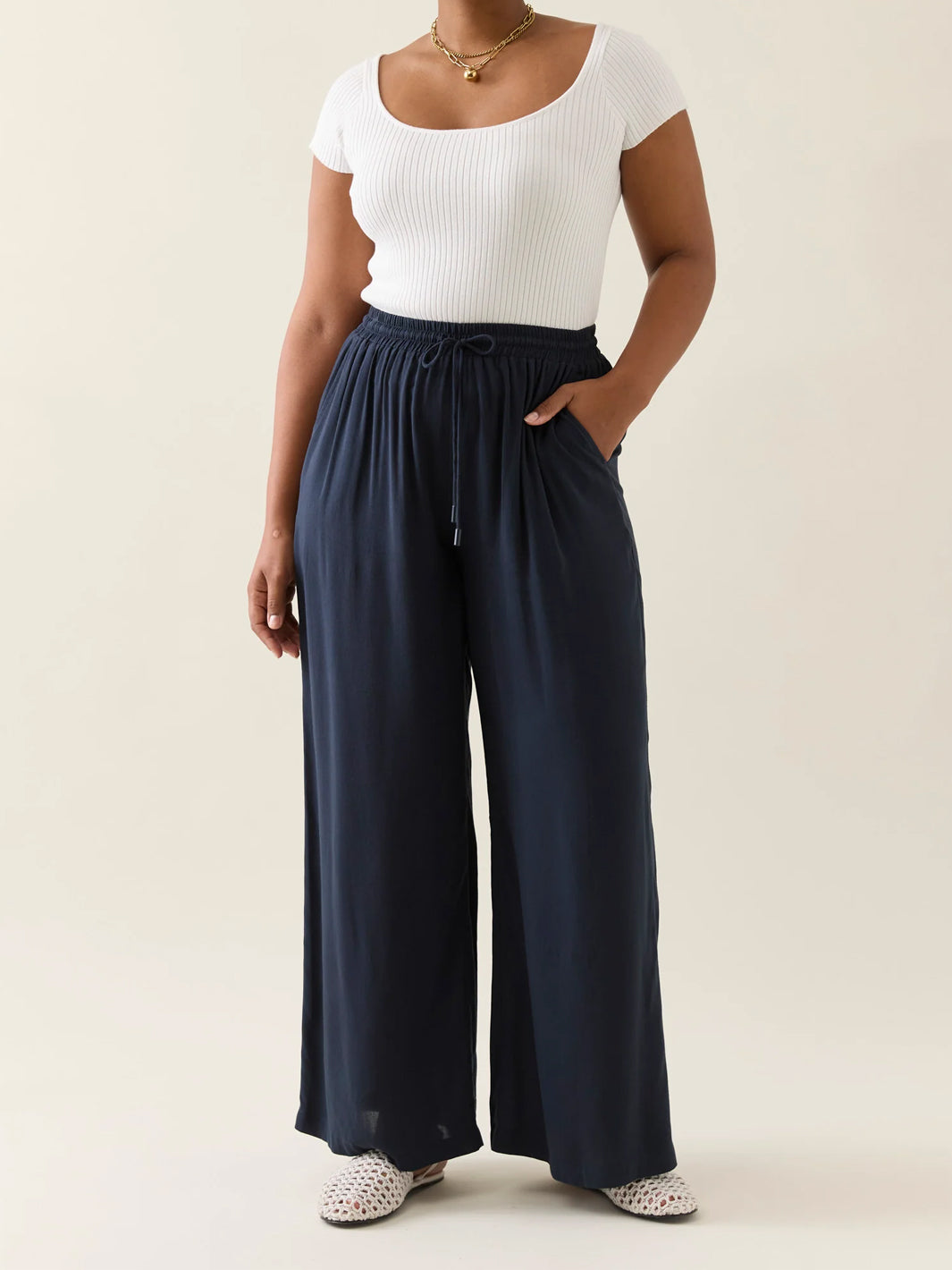 An everyday essential, the Oline Pant is crafted from lightweight fabric with an elasticated waistband, drawstring tie and full-length relaxed fit. Side pockets keep it functional. Wear with the Adele Tank and your favourite rope wedges for summer ease from daytime errands to evening catchups.
