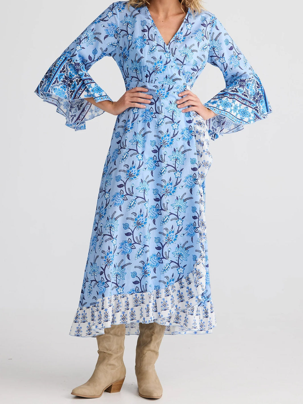 Soft, romantic, and full of movement — the Carly Dress is a dreamy statement piece designed to flatter every figure. Crafted in a true wrap style, this dress features a softly gathered bust and a waist tie for a customizable fit that enhances your silhouette.
