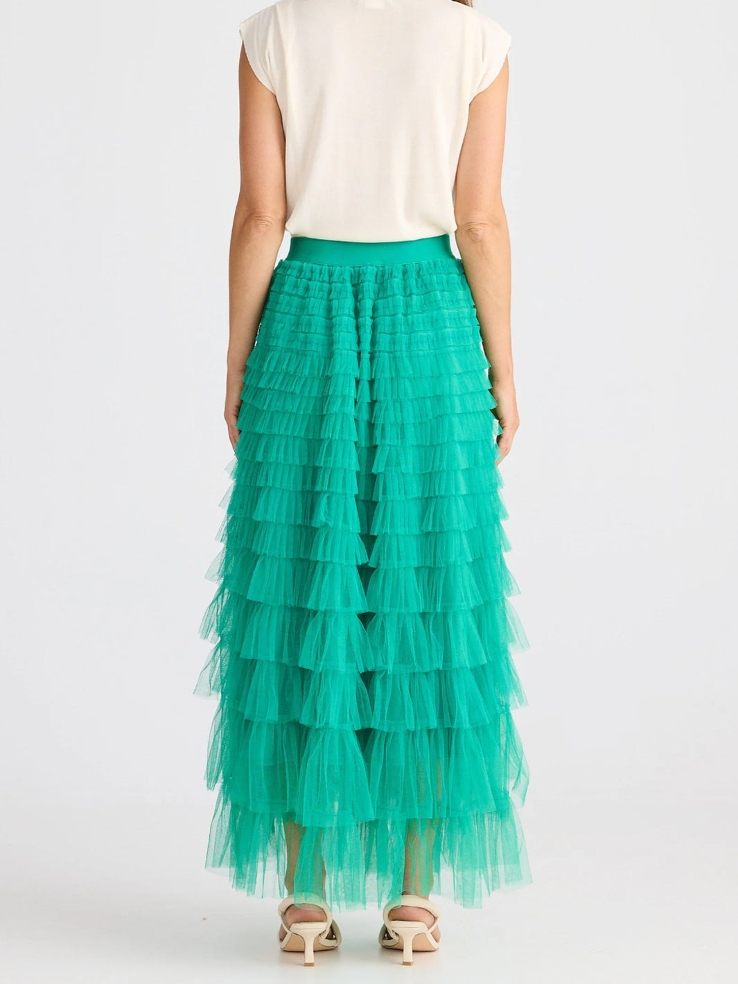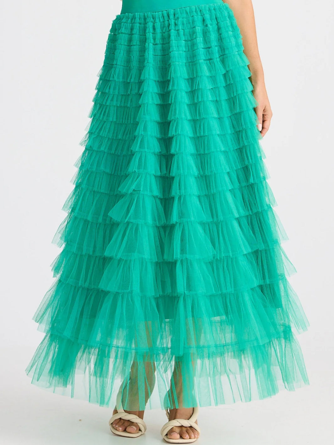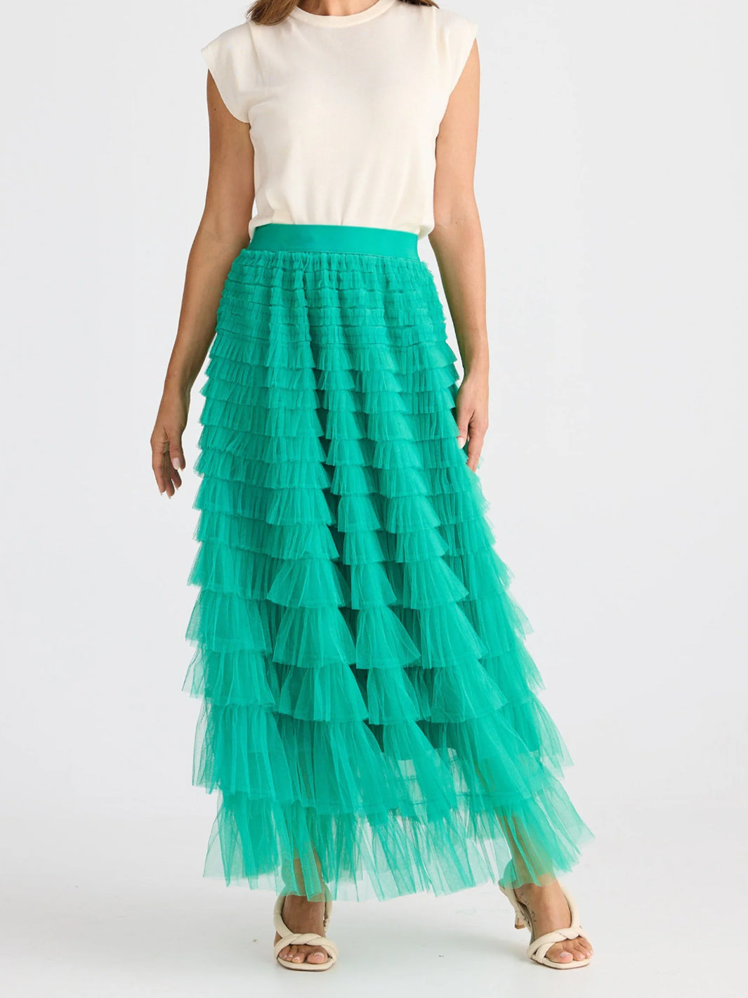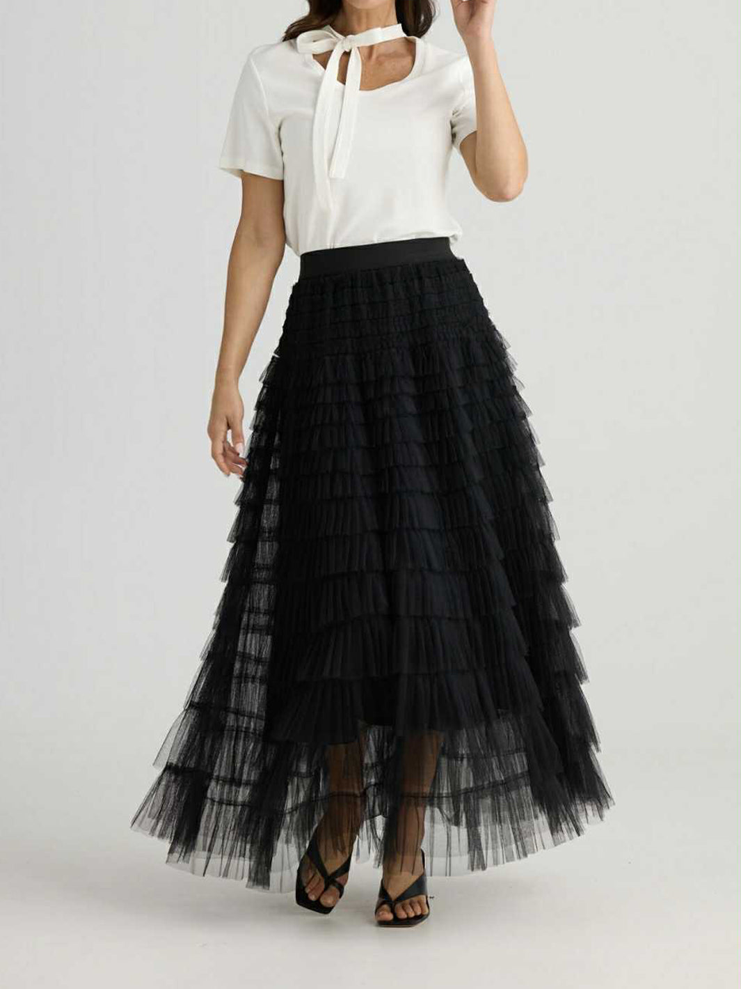 Turn heads in our Chance Skirt. Tiered layers of ruddled tulle. Pair with our Chance Tee to complete the look.
