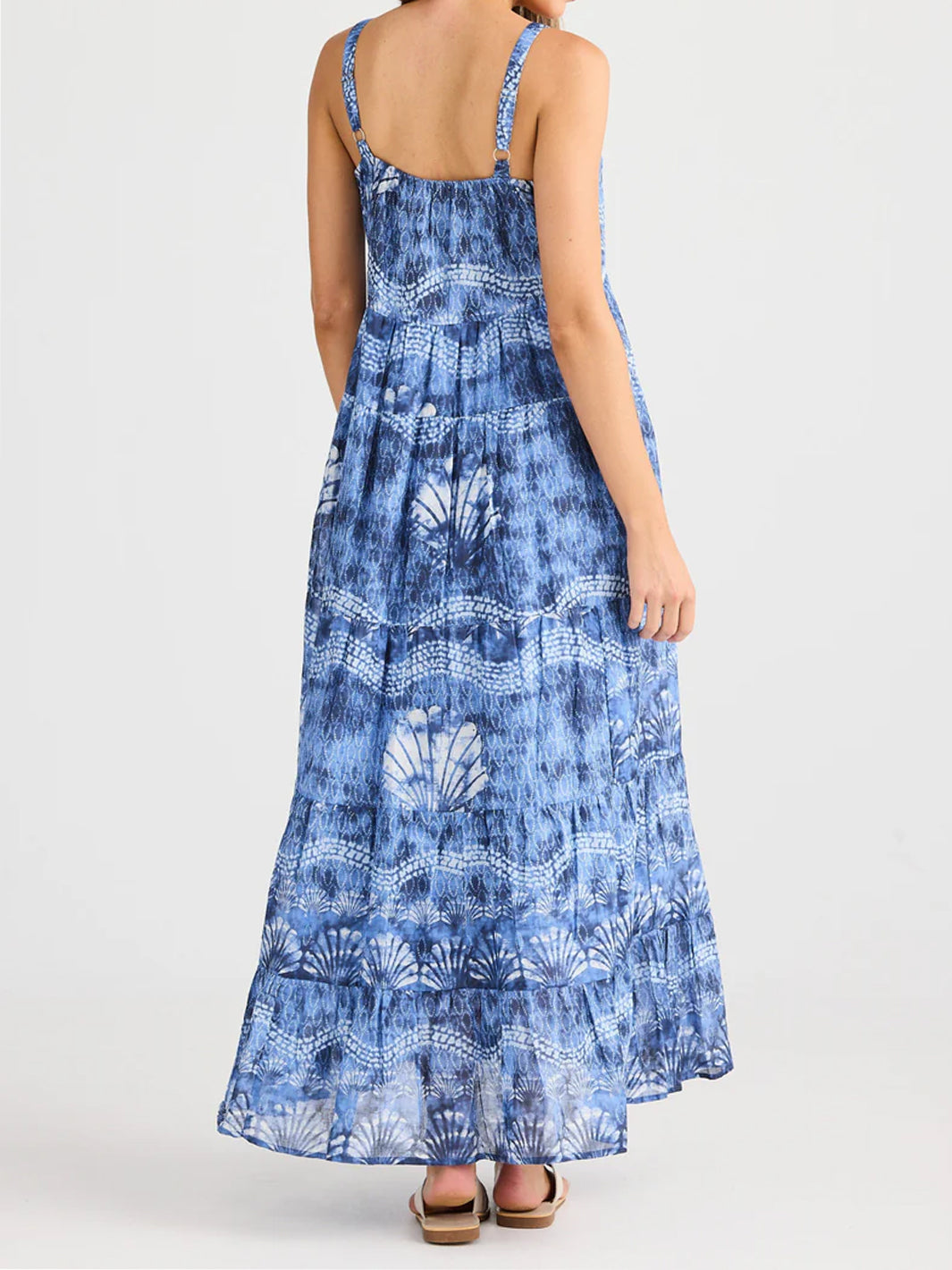 This effortlessly elegant Evianna Dress features wide adjustable straps for a customizable and secure fit, complemented by an elasticated back that offers all-day comfort and flexibility. The tiered design creates beautiful movement and adds a touch of volume, while the maxi length brings a sense of flow and sophistication to the overall look. Perfect for warm days, holidays, or relaxed occasions, this dress combines comfort with timeless style.