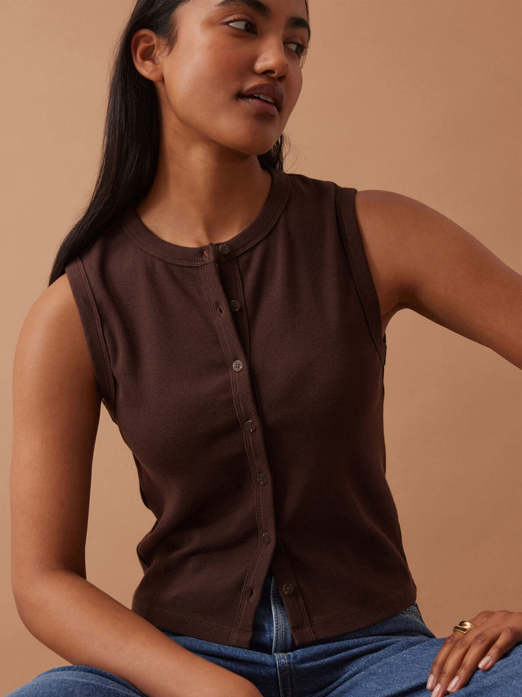 Lyla Button Through Rib Tank