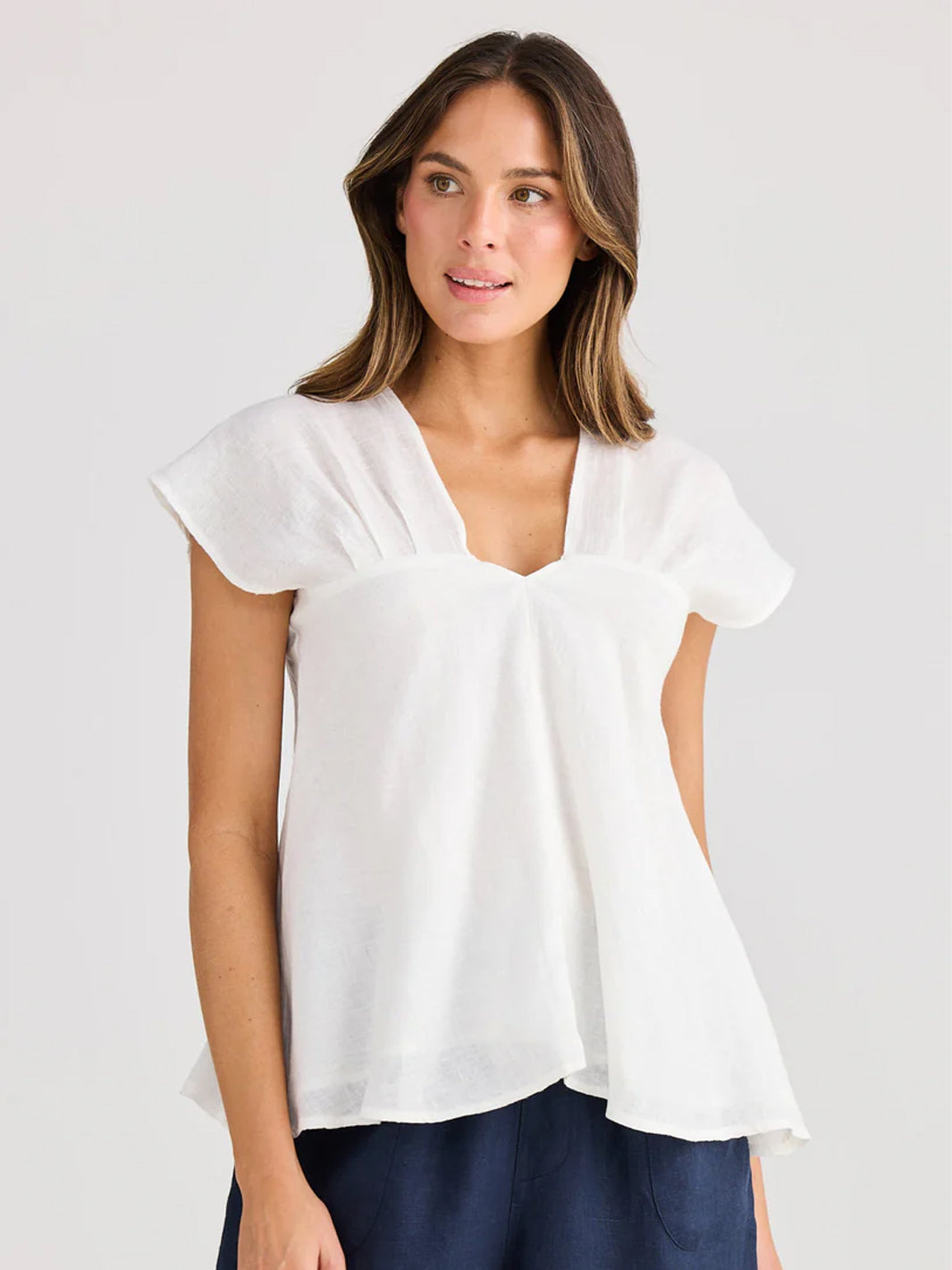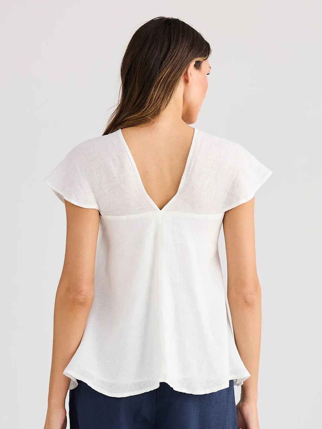 Effortlessly chic and endlessly versatile, this top features a flattering V-neckline and loose short sleeves with delicate pleat detailing for a touch of subtle elegance. Designed with a relaxed fit, it drapes beautifully on the body, offering both comfort and style. Perfect for dressing up or down, this piece transitions seamlessly from day to night.