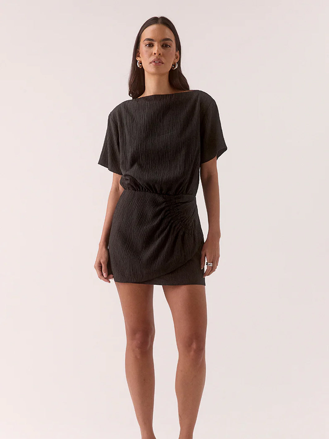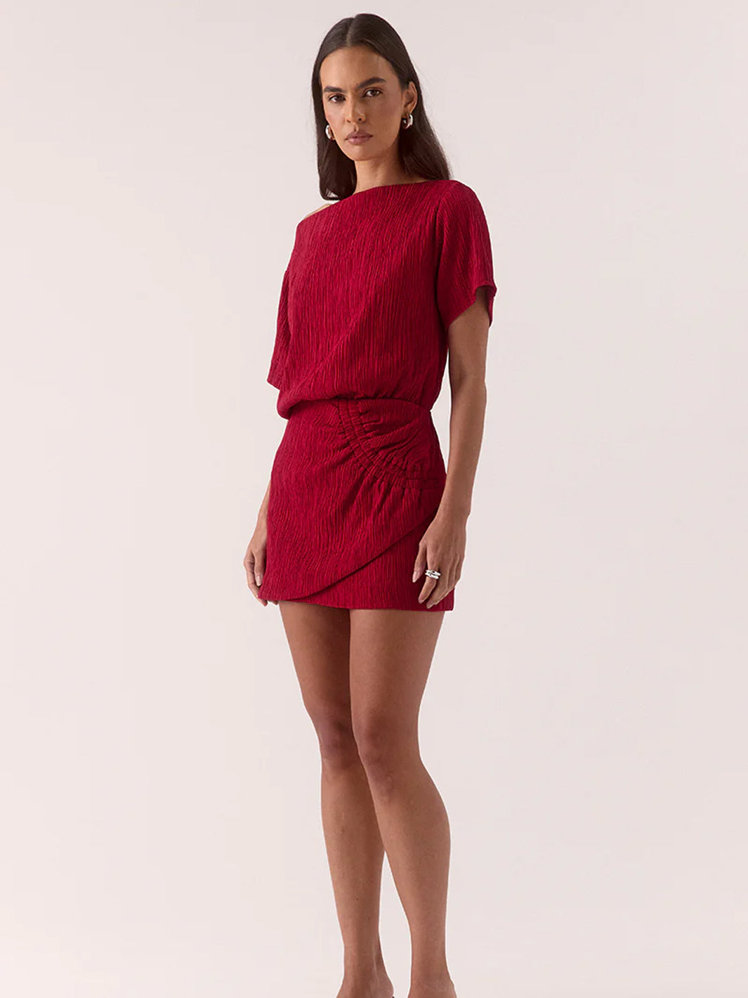 Effortless and flattering, this textured crinkle mini dress blends casual comfort with elevated detailing. Crafted from a soft, dimensional fabrication and fully lined for easy wear, it’s the perfect throw-on style with a refined twist.