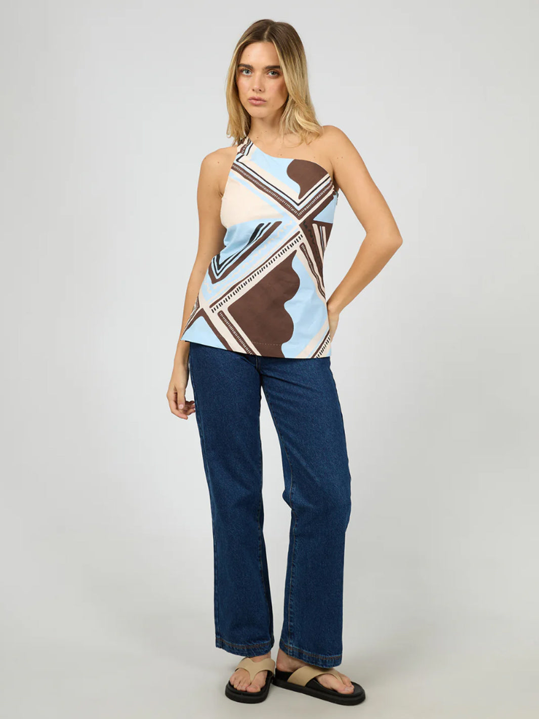 In need of a new beach to bar top, look no further than our Antibes One Shoulder Top. Inspired by the french coastline, this top is made from a crips cotton poplin fabrication and features our custom Antibes Yardage print. This relaxed top looks great styled back with denim and sandals!