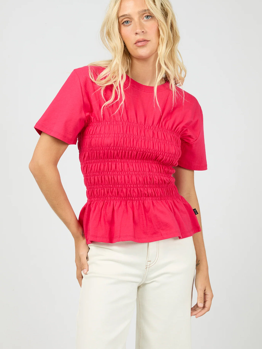 Elevate your everyday style with our chic Lipa Ruched Top, designed to offer a flattering fit and a touch of sophistication, featuring ruching details throughout the main body that created a beautiful silhouette. Crafted from soft, breathable cotton fabric, this tee combines comfort with contemporary flair. Ideal for casual outings or dressier occasions, the perfect versatile addition to any wardrobe. Pair with some denim bottoms and sandals for a more casual look or dress it up with some tailored pants and heels.