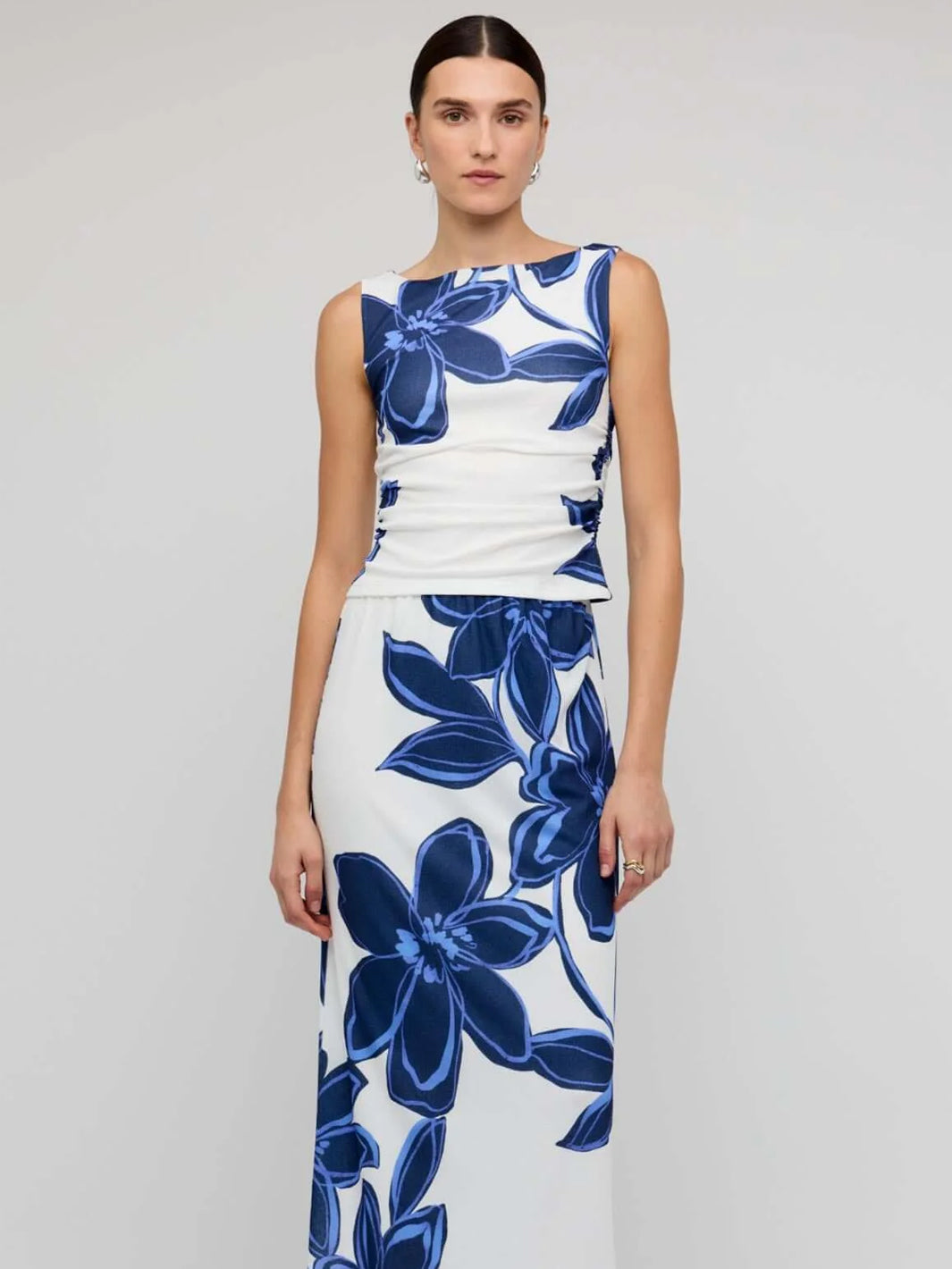 The Ethos Blue & White Floral Mesh Top by Staple the Label is a statement sleeveless design featuring a bold oversized floral print. Crafted in a soft stretch mesh, it’s fully lined for comfort and designed with side ruching for a flattering fit. Perfect for styling with the matching Ethos Mesh Maxi Skirt or pairing back with denim for a chic everyday look.