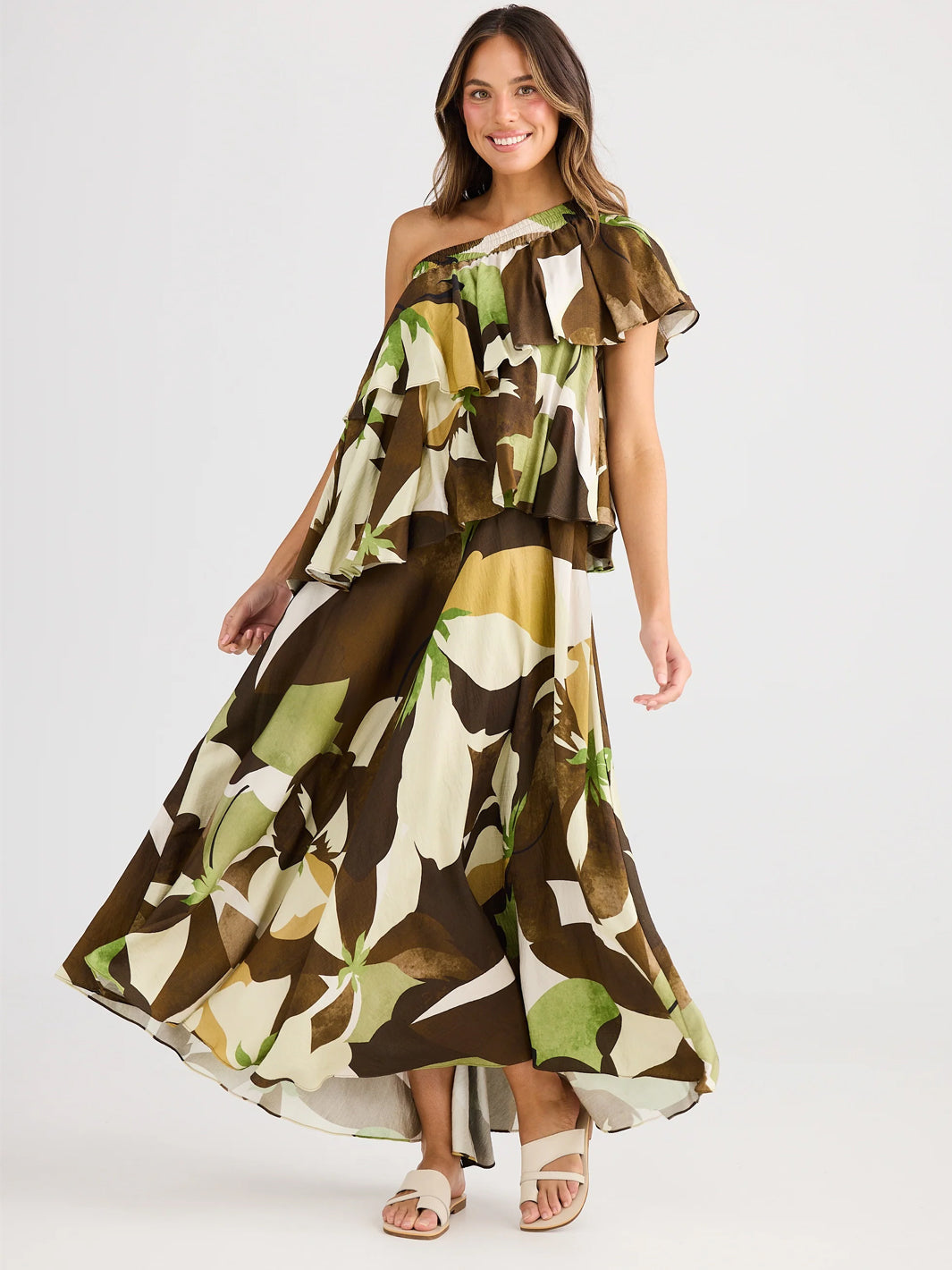 Make a statement with this elegant one-shoulder top, featuring layered ruffles that add movement and a touch of drama. Crafted from a soft and breathable blend of 80% viscose and 20% polyamide, it offers both comfort and style. A discreet side seam zip ensures a sleek fit, making it perfect for elevated evenings or standout daytime looks.