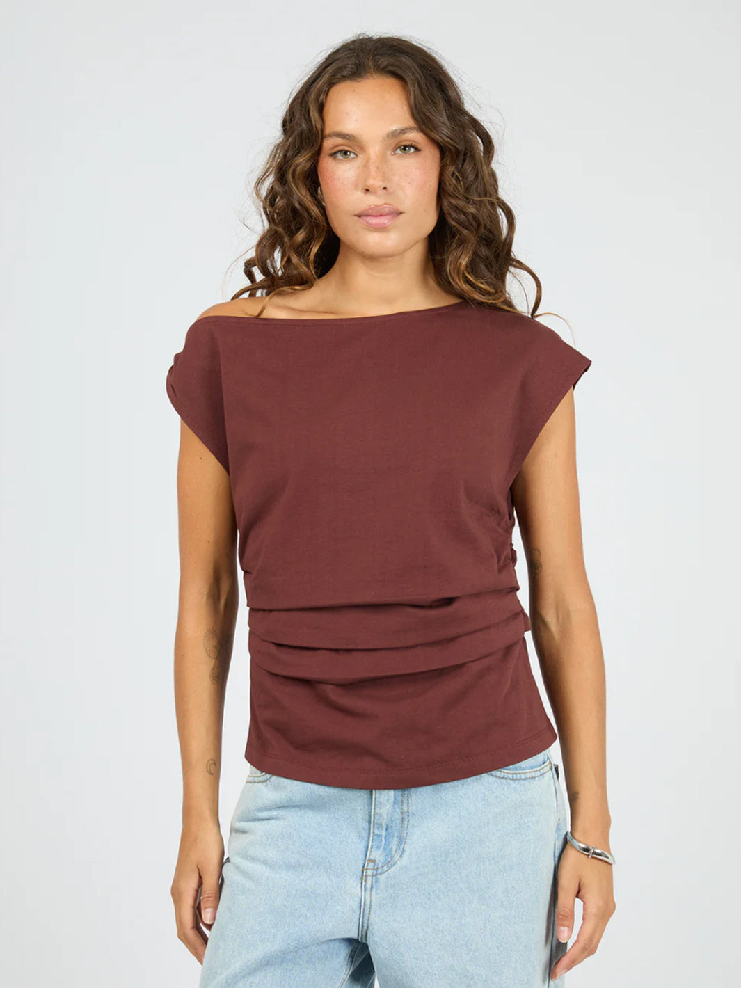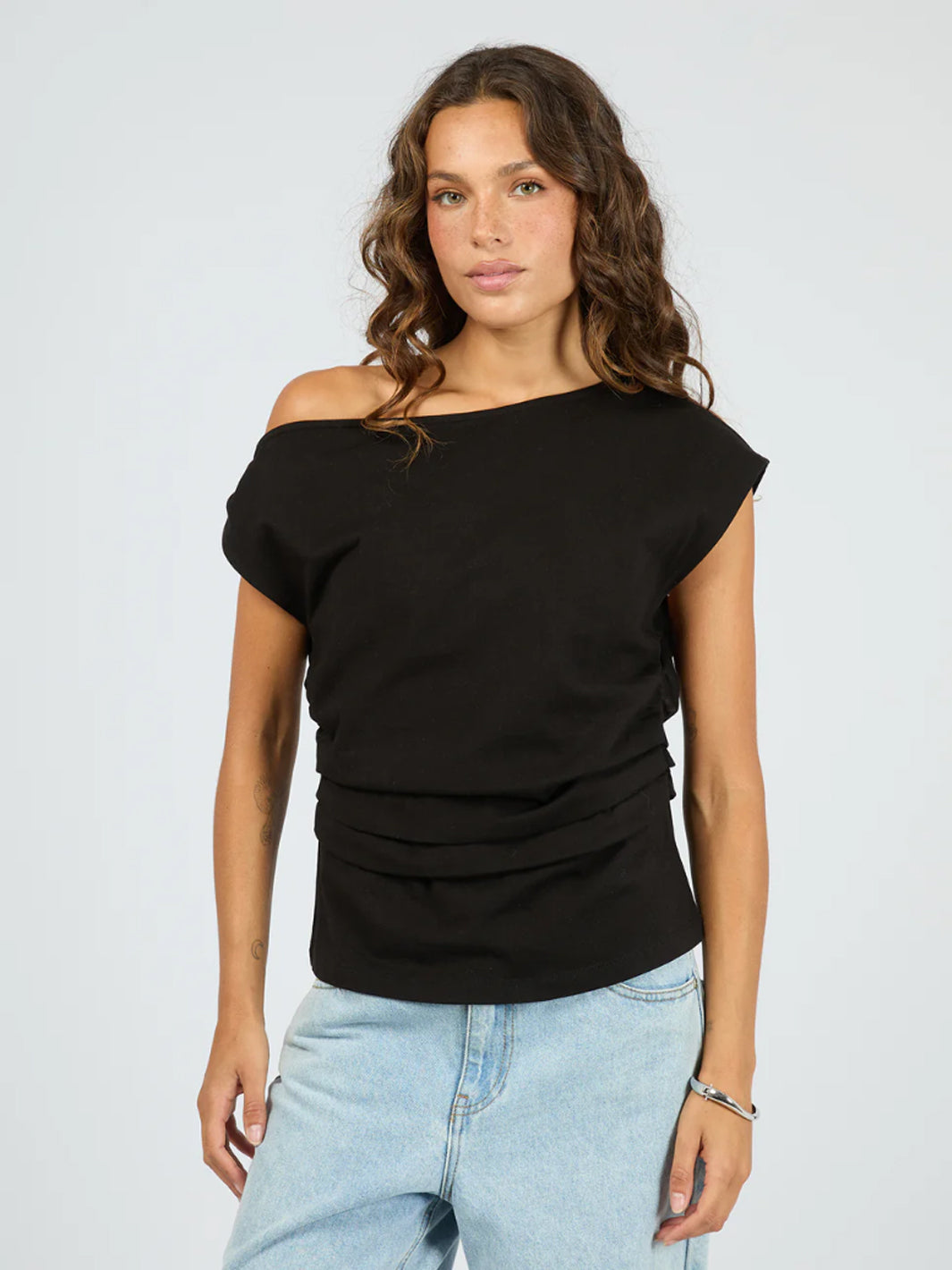 Looking for elevated basics, look no further than our Soho Tee. Made from a heavy weight cotton jersey, this tee features a relaxed fit with pleat and ruched detail at the side seams. This off the shoulder moment is going no where, so add the Soho Tee to your cart today!
